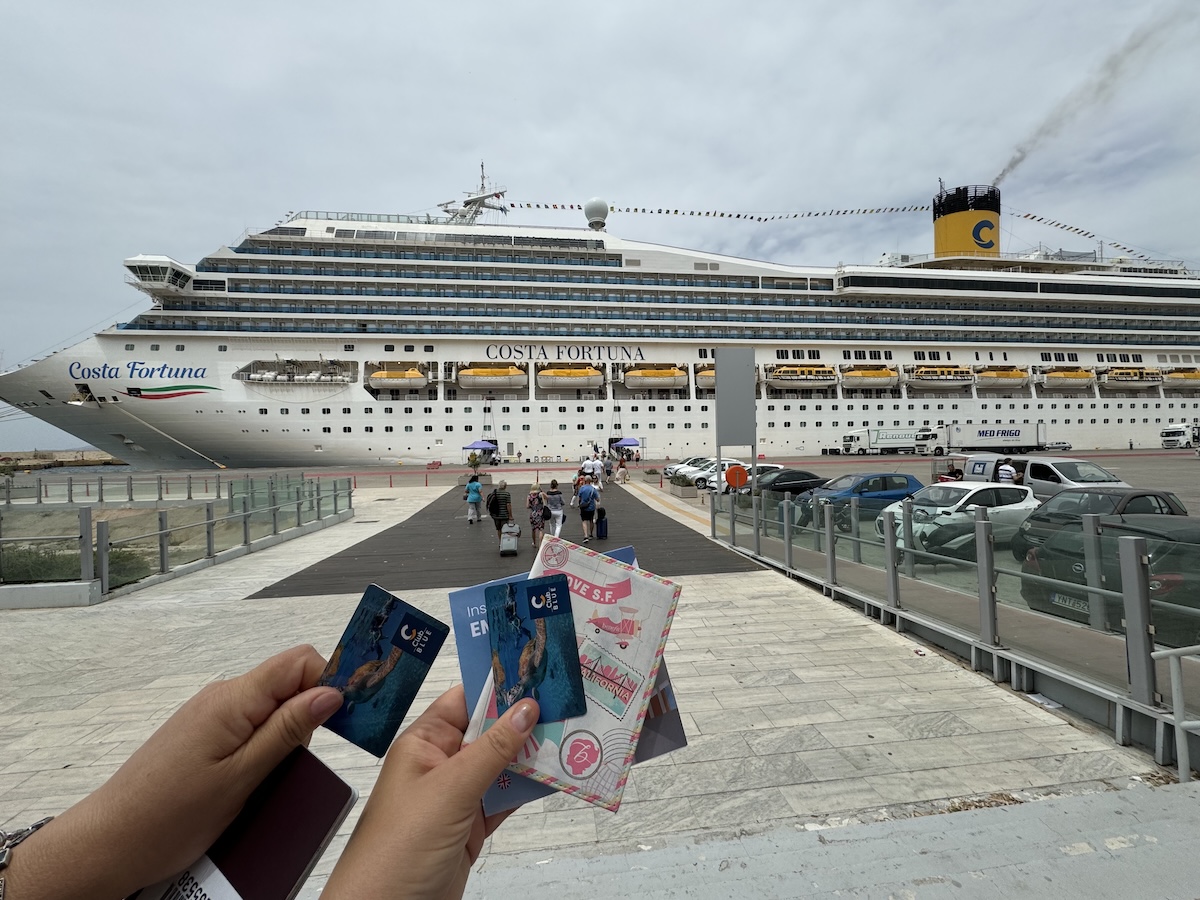 A doua zi la pranz sosit momentul mult a?teptat: îmbarcarea pe Costa Fortuna. Ne-am imbarcat pe vas cu emotie, insa totul era deja pregatit sa ne intampine. De la preluarea bagajelor de catre personalul foarte bine instruit si amabil pana la bufetul care era deja pregatit pentru oaspeti, totul era perfect aranjat pentru noii veniti la bordul navei.