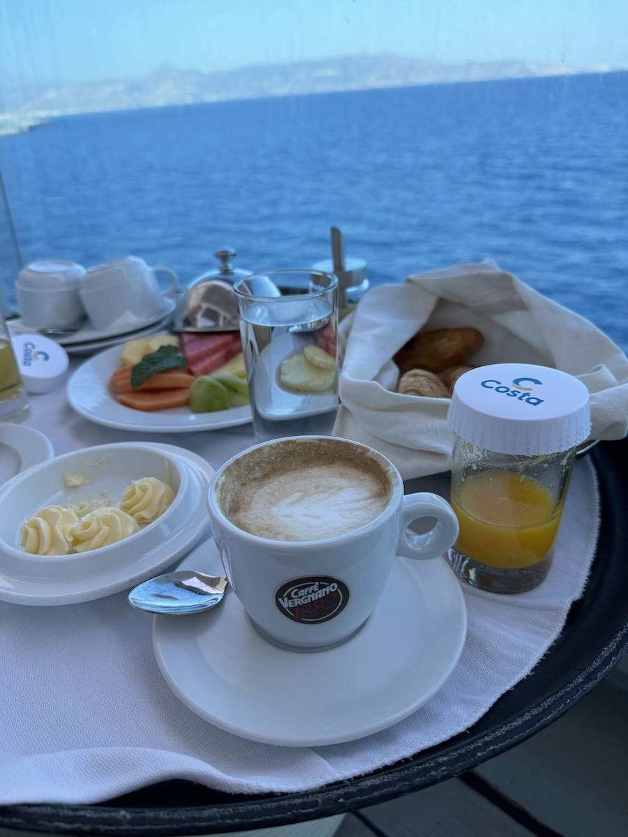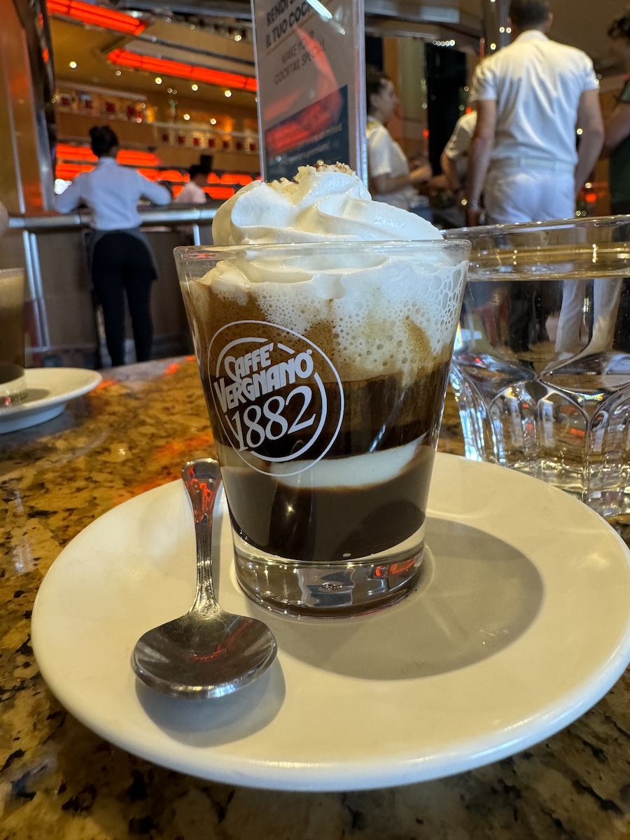 În ultima zi am luat micul dejun pe vas, dupa care am petrecut relaxate orele diminetii la o cafea Vergnano cu ciocolata si frisca.
