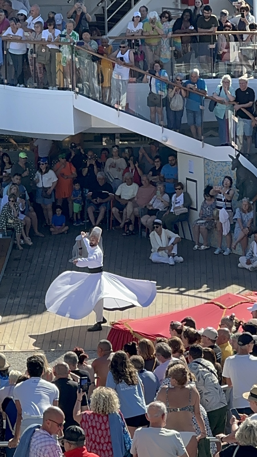 A doua zi am avut parte de o experien?? aparte: traversarea Strâmtorii Dardanele. A fost fascinant s? navig?m prin acest punct strategic, un loc înc?rcat de istorie ?i pove?ti, conectând Marea Egee de Marea Marmara. A fost ca o c?l?torie prin istorie ? o zon? plin? de pove?ti ?i simboluri, cu o priveli?te spectaculoas? asupra ??rmurilor Turciei acompaniata de un spectacol superb de cantareti si dansatori turci care a culminat cu dansul magic al dervisilor rotitori.